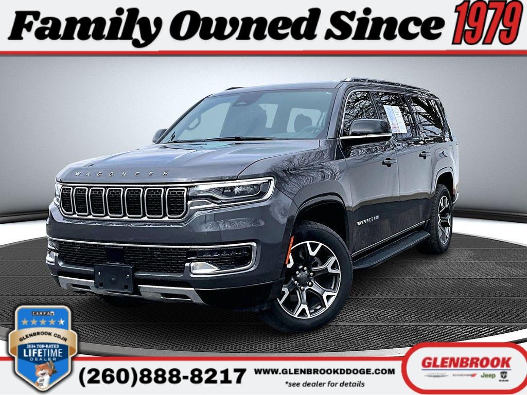 The leather seats in the Jeep Wagoneer L are a must for buyers looking for comfort, durability, and style. This model offers Android Auto for seamless smartphone integration. Start the vehicle from inside with remote start. This 1/2 ton suv features a hands-free Bluetooth phone system. You'll never again be lost in a crowded city or a country region with the navigation system on this model. The Jeep Wagoneer L has auto-adjust speed for safe following. This 1/2 ton suv offers Apple CarPlay for seamless connectivity. This vehicle has a clean CARFAX vehicle history report. Protect the vehicle from unwanted accidents with a cutting edge backup camera system. Good News! This certified CARFAX 1-owner vehicle has only had one owner before you. Keep your hands warm all winter with a heated steering wheel in this Jeep Wagoneer L . Enjoy the convenience of the power liftgate on the vehicle. Set the temperature exactly where you are most comfortable in this Jeep Wagoneer L. The fan speed and temperature will automatically adjust to maintain your preferred zone climate.