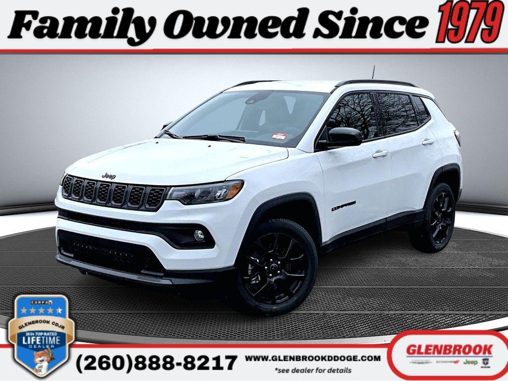 Save big on this 2026 Jeep Compass Latitude Altitude 4WD, located in Fort Wayne, IN â" priced to be the best deal in town. This sharp crossover pairs a fuel-efficient 4-cylinder 2.0L gasoline engine with capable 4-wheel drive for confident handling in all weather and road conditions. The Latitude Altitude trim adds bold styling and comfort-focused features that elevate everyday driving. Inside, enjoy modern convenience with Automatic Climate Control and Remote Start for instant comfort on cold or hot mornings. The Heated Steering Wheel keeps you warm when temperatures drop, and the Back-Up Camera makes parking and reversing safer and simpler. Stay entertained and connected with XM Radio and an intuitive infotainment interface. With spacious seating, refined interior accents, and a smooth, responsive ride, this Jeep Compass balances practicality and style. Whether commuting through Fort Wayne or heading out for weekend adventures, this Jeep delivers reliability and value. We're offering the best price on this 2026 Jeep Compass Latitude Altitude 4WD â" competitively priced to move quickly. Contact us today to schedule a test drive in Fort Wayne, IN, and experience this well-equipped Jeep Compass for yourself. Don't miss this exceptional value and capability in a compact SUV.