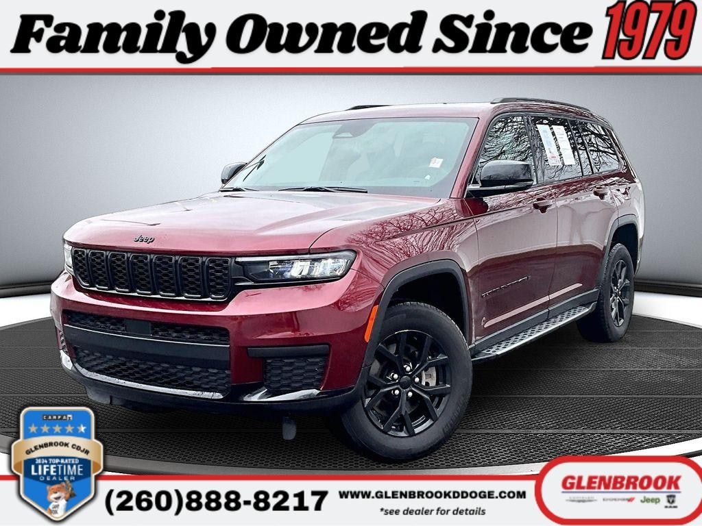 Experience the refined capability of this 2025 Jeep Grand Cherokee L Altitude X, now available in Fort Wayne, IN. With 39,912 miles and a robust 3.6L V6 gasoline engine paired to an advanced 4WD system, this Jeep Grand Cherokee L delivers confident performance on highways and rugged terrain alike. The Altitude X package blends premium comfort and rugged style, featuring a spacious three-row interior ideal for families and weekend explorers. Safety and convenience are front and center: this vehicle carries a CARFAX Clean Report and includes Forward Collision Warning to help protect occupants on every drive. Tech-forward amenities such as Android Auto keep your smartphone integrated for navigation, calls, and media, while Remote Start provides cabin comfort before you step inside. A Heated Steering Wheel enhances winter driving comfort, making cold mornings more pleasant. Inside, refined materials and versatile seating offer a comfortable, practical cabin for daily commutes and long trips. Exterior Altitude X accents deliver a distinctive look that pairs form with function. With comprehensive features, a documented clean history, and a powerful V6/4WD drivetrain, this Jeep Grand Cherokee L represents exceptional value in Fort Wayne. This vehicle is competitively priced and listed as the best price available â" an outstanding opportunity to own a well-equipped, reliable SUV built for comfort and capability. Schedule a test drive today.